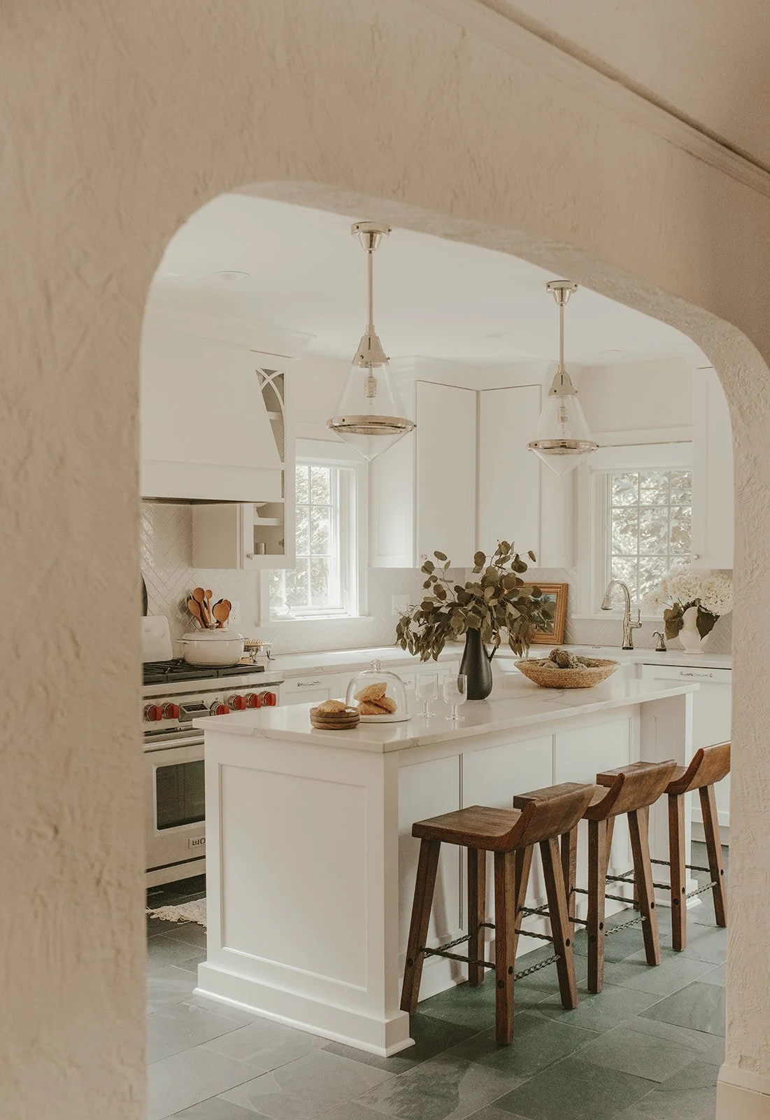 Brick + Linen Interior Design partnered the kitchen renovation of this historic Tudor home. When a good thing needs to keep going, B+L Styling gave the fireplace a new look, renovated an upper level bathroom and furnished the dining room and primary suite.)